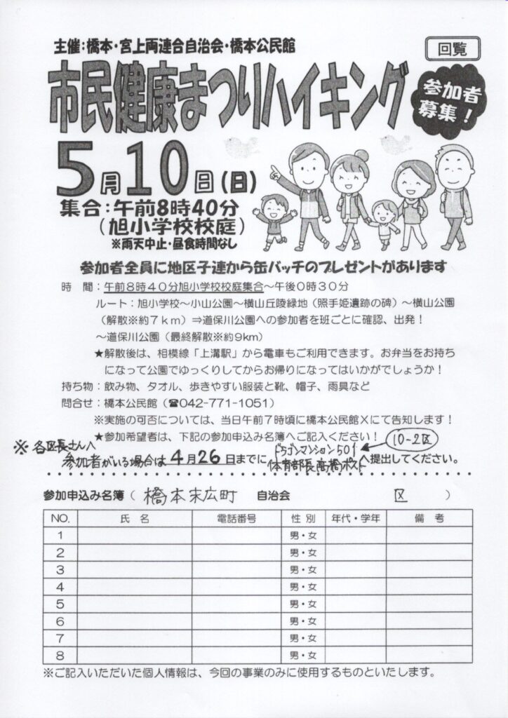 5/10(日) 市民健康まつりハイキング