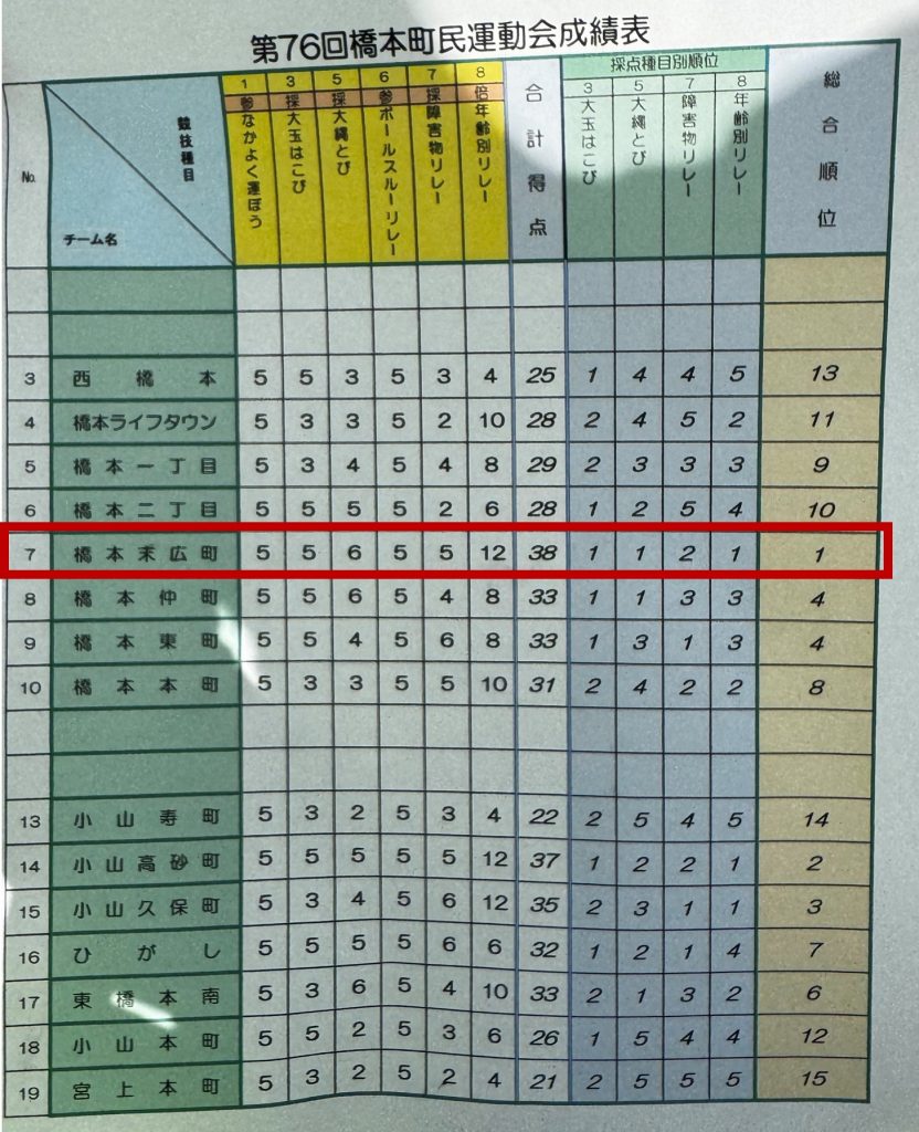 このたび開催されました「橋本町民運動会」において、末広町自治会が25年ぶりに優勝🏅することができました。